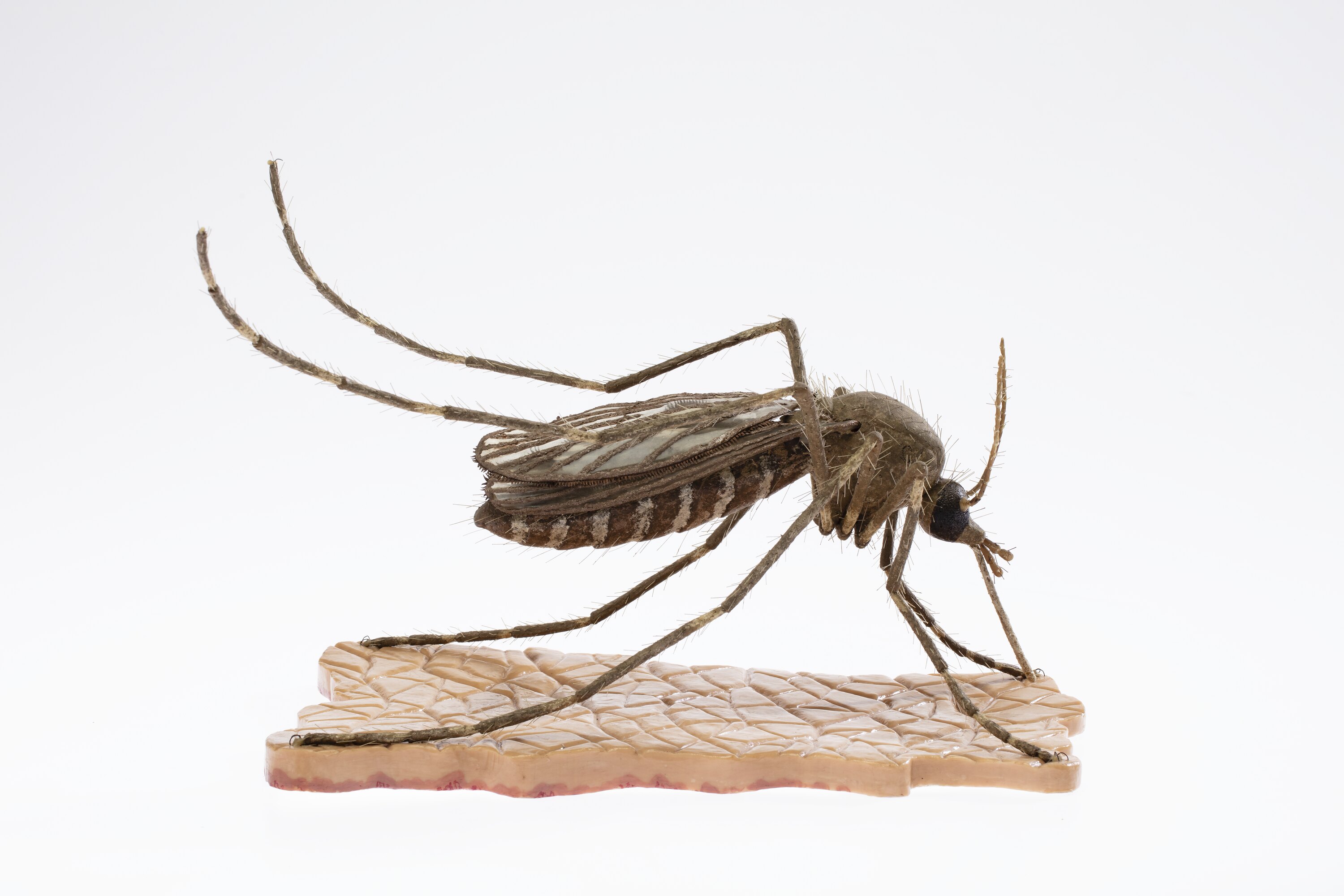 A model of the culex mosquito (typical of various species) represented in a typical stance as if just about to feed on human skin.
