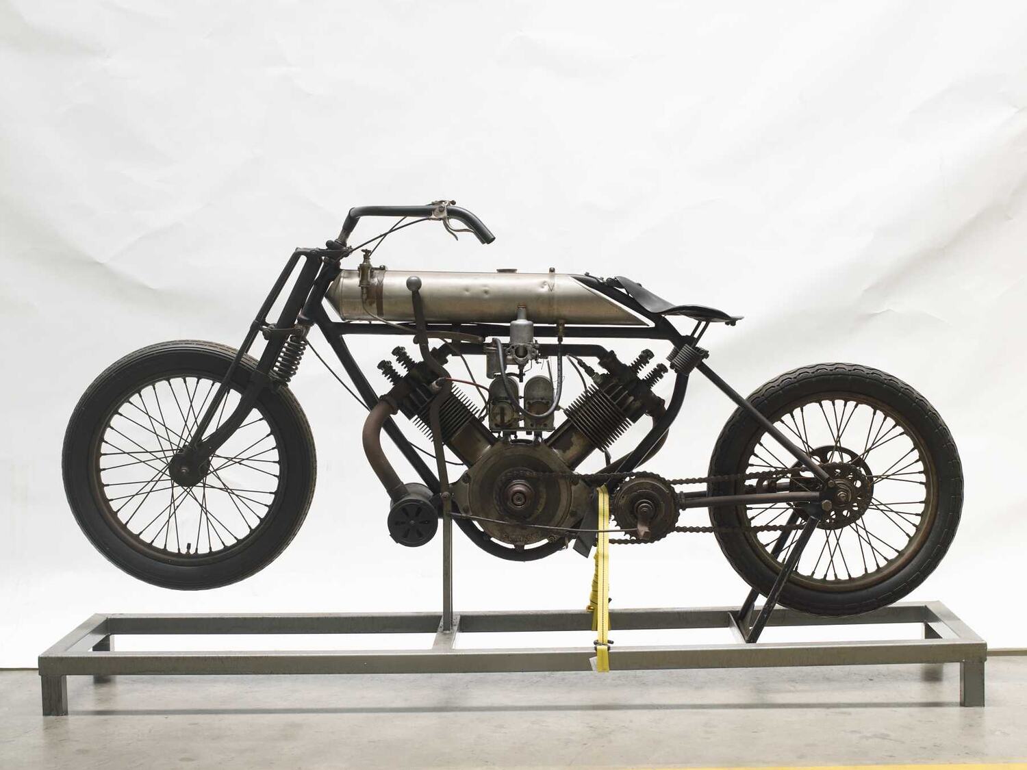Oliver's plans for this motor cycle were drawn up on brown paper after "arriving home one evening a little the worse for an afternoon at the local hostelery" according to his son Monty. John Oliver made the wooden pattern for the engine mouldings and castings were obtained from Chas Ruwolt's foundry in Victoria Street, Richmond and then machined on Oliver's own workshop lathe, including turning the cooling fins. The motor cycle has a large 1497 c.c. capacity V-twin cylinder engine and a single-speed transmission with a lever operated clutch. Originally it was capable of a top speed of 85 m.p.h (140 km/h). The original carburettor was a Zenith later replaced by a Schebler. The original wheels were replaced around 1938 with a pair of conventional second-hand motorcycle wheels. John Oliver died in 1949 and the Planet was left dismantled in storage. John Oliver's sons, Allen and John (Monty) Oliver decided to reassemble the machine around 1980. One replacement magneto was purchased and a non-original S.U carburettor was fitted at this time. After Allen's death, Monty Oliver donated the Planet to the Museum in 1987.