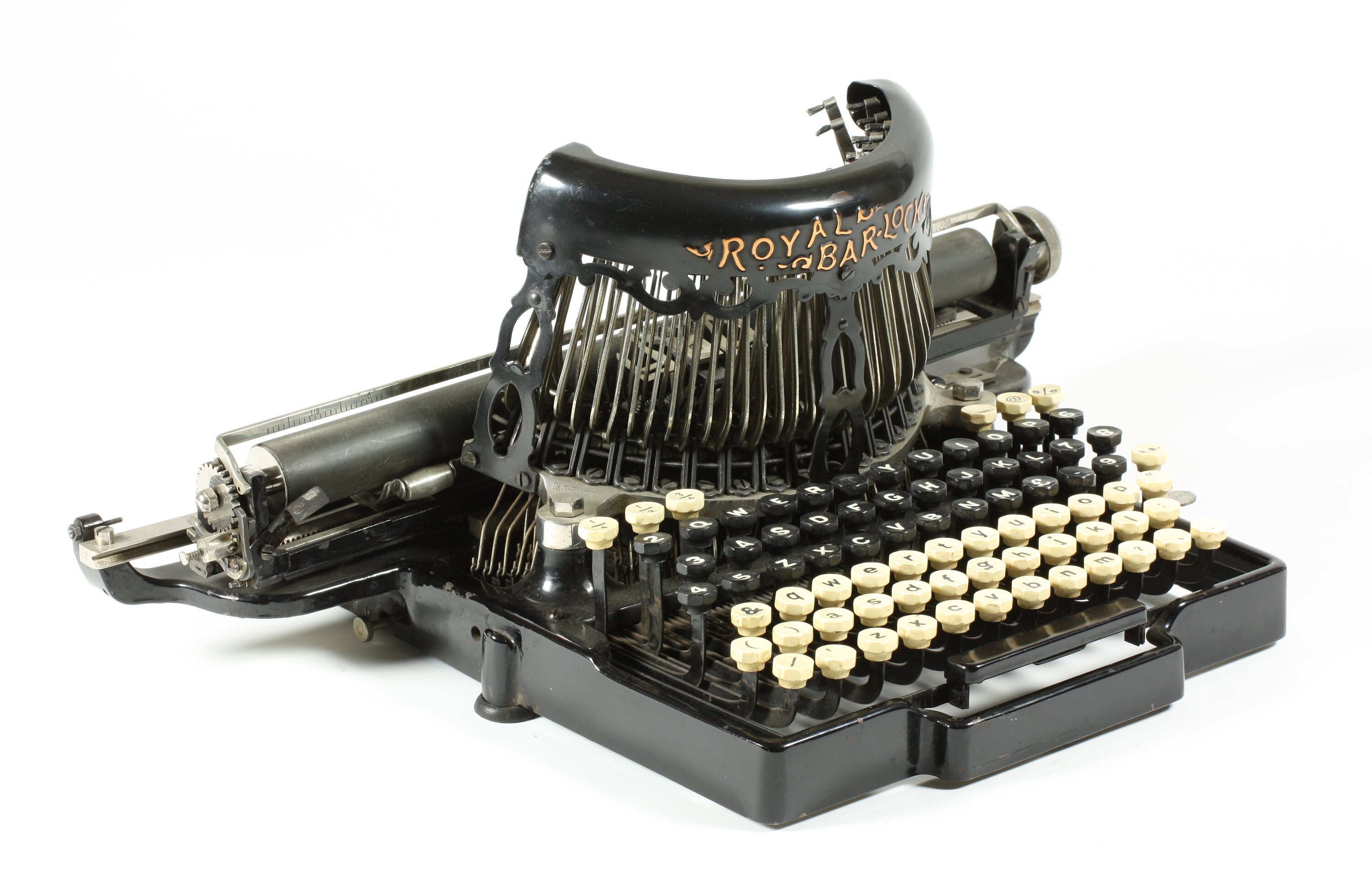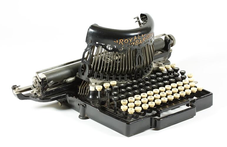 Typewriter manufactured by the Bar-LockTypewriter Company of Nottingham, England and marketed under the name 'Royal Bar-Lock'. The design was patented in 1889 by Charles Spiro and was originally manufactured by the Columbia Typewriter Manufacturing Company of New York. In 1914 all patents, rights and manufacturing machinery were transferred to Bar-Lock in England.