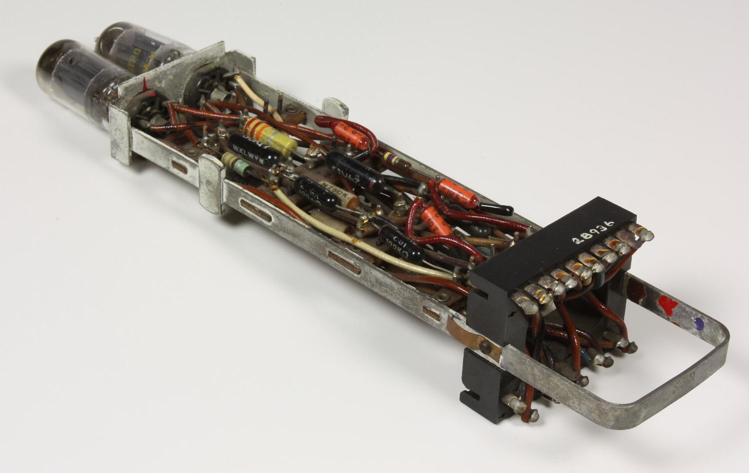 Plug in electronic module for Powers-Samas punched card computer; a two valve (12AU7) unit with associated components. Bistable multivibrator (flip-flop).