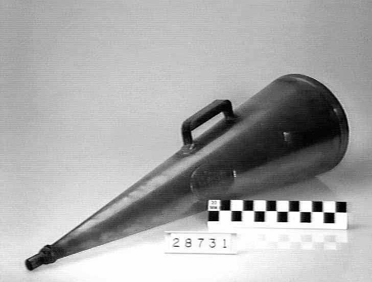 'Quenchee' conical hand held fire extinguisher made by Shanks & Co. Pty Ltd., Melbourne. Plunger mechanism triggers the extinguisher when the base is struck against a hard surface.