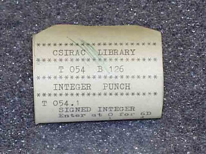 Tape is titled "CSIRAC LIBRARY T054 B126 Integer Punch"