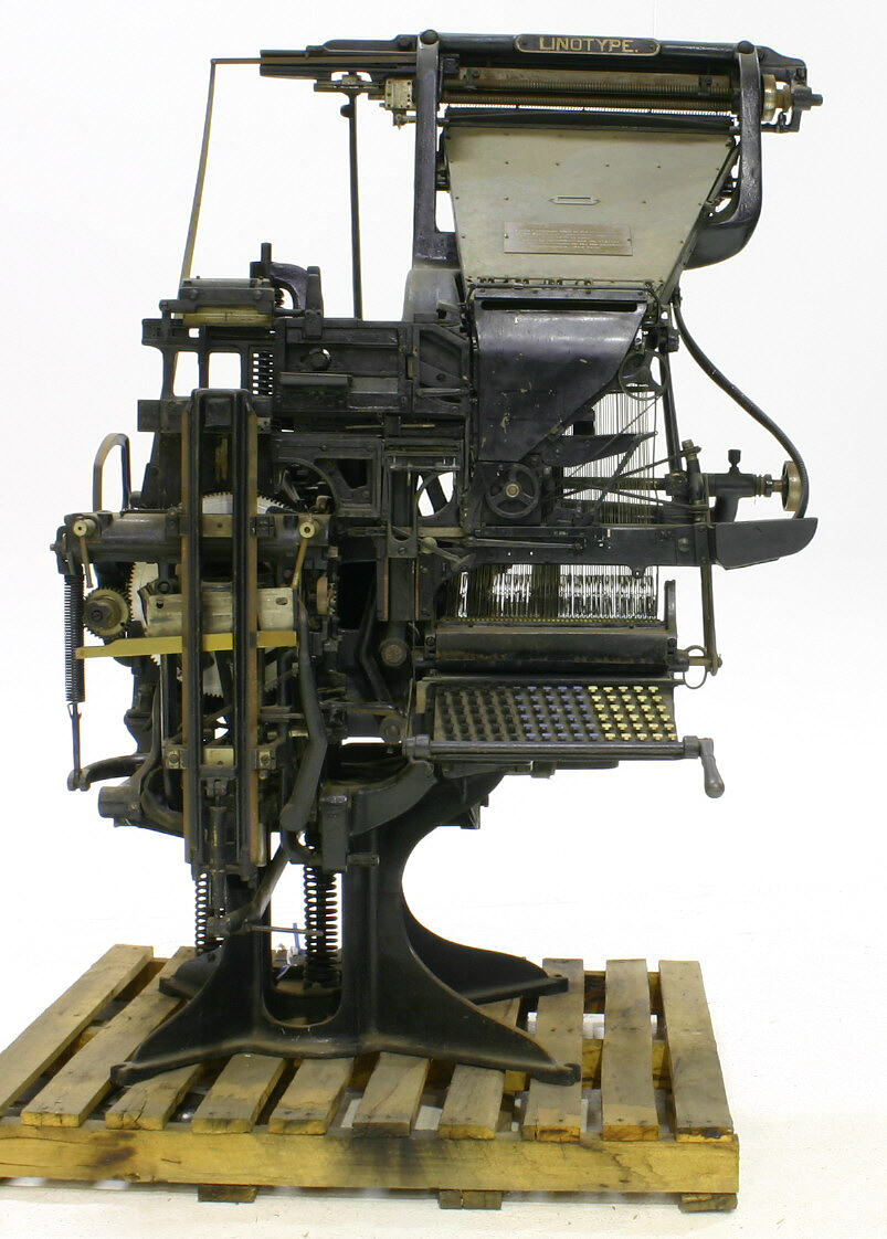 Linotype machine, manufactured by Mergenthaler Linotype Co., USA and is dated to 1896. It was used in the production of the Launceston Examiner from 1896 to 1953. It was one of the first linotypes in Australia and the first in Tasmania.