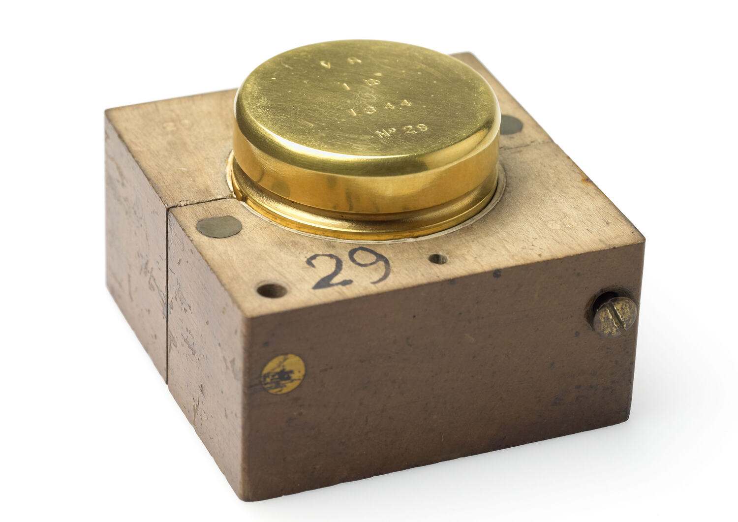 Standard Troy pound, Parliamentary Copy of the British Standard Pound, no. 29, 1844. Used as a primary standard for the Colony of Victoria.