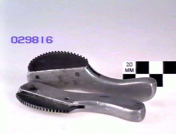 From its size, it would appear that it is hand held and it is possible that it is used in a similar way to a rasp to hand work the edges of a plate.