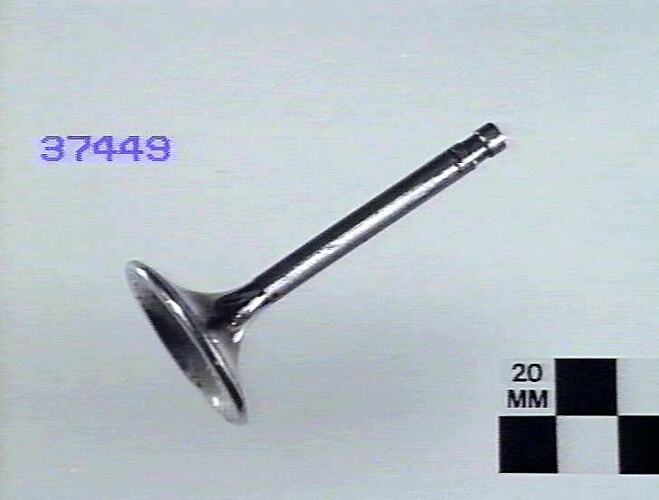 Japanese Imperial Navy Mitsubishi A6M Zero engine valve from a Nakajima Sakae radial engine. Donor states it came from the first Japanese aircraft shot down in New Guinea. If this statement is accurate then the valve may be from a Zero flown by Petty Officer Katsuro Nagatomo of the Imperial Japanese Navy 4th Air Group who was shot down by ground fire by members of the 39th Battalion AMF over Bootless Inlet near Port Moresby on 28 February 1942. Nagatomo was wounded, burned and bailed out of his crippled aircraft, parachuting into the water. He was captured and sent to Laverton in Victoria for medical treatment and to Queensland for subsequent interrogation. He was transferred to the No 12 POW Camp, Cowra in 1943 and later took part in the August 1944 'Cowra Breakout' during which he was shot in the chest and killed.