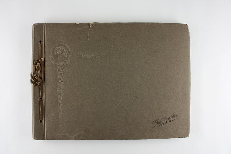 World War I photograph album containing 129 photographs. Includes photos of servicemen, battle sites and buildings.