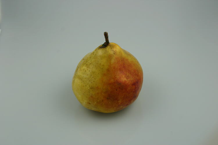 Model based on specimen grown and presented by Robert Whatmough, Greensborough, 1875. Robert named this particular variety after the property he rented to run his orchard, 'Willis Vale'. The model was made in the Museum by Thomas McMillan for the Philadelphia Centennial Exhibition of 1876.
