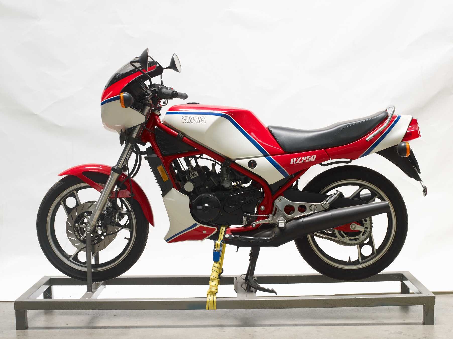 This late 1983 production 247 c.c model was purchased new by the Museum from Yamaha Australia in 1984. It represents the smallest sized motor cycle in the water-cooled high-powered two-stroke RZ series with which Yamaha achieved considerable racing success during the late 1960s and 1970s.