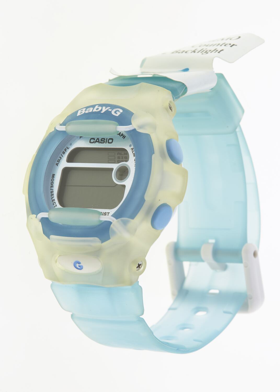 The Casio Baby G is a women's version of the G-Shock, which offers high shock and water resistance. This high-tech digital watch features an animated screen that tells the time in dual timezones, and has a calendar, alarm, stopwatch, back light and a databank that holds names and telephone numbers.