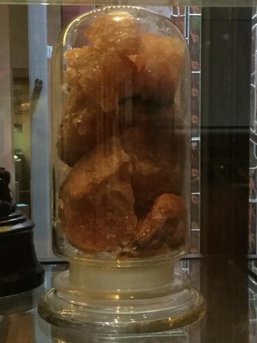 This mineral sample is sodium chloride also know as common or rock salt. The sample, which consists of lumps of a brownish red colour and probably contains some impurities, comes from Stassfurt, Germany. It was exhibited at the 1888 Melbourne Centennial International Exhibition. At the close of the exhibition in 1889 Captain Wagemann donated the sample to the Industrial &Technological Museum.