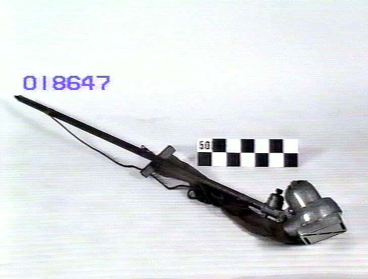 The agent's plate has been removed but it could have been made by Keller Manufacturing Co., Philadelphia and the Australian General Electric Co. It is very similar to another vacuum cleaner (ST 017992) which was made by Keller and is a Santo model. In fact the bag clip on ST 018647 is marked 'Santo'; the switch on motor end of handle is marked 'Perkin'.