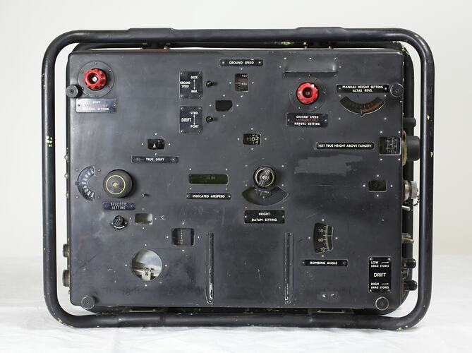 One of two bombsights purchased in 1975 from the Department of Manufacturing Industry (ST 029000 and ST 40178), registered in 1975 and some time before 1995. Documents in the Museums Victoria Archives show they were purchased by the Science Museum of Victoria in March 1975 from the Department of Manufacturing Industry at a cost of $2.00 for both. Sales Advice SN36077, dated 20 March 1975, discusses arrangements for sending them to the museum. A letter from the Department of Manufacturing Industry to the Science Museum of Victoria, 14 Jan 1975, advises that they were 'declared surplus by the Department of Defence (Air)'. They are described as 'being usable without repairs, fair condition' and are located in the Department of Manufacturing Industry Auction Store, Hale St, Botany, NSW. Department of Manufacturing Industry correspondence related to the purchase was given file number N540/11/933. Their identity is confirmed by the identity number on the correspondence, '1280-E9-4567'. This corresponds with markings on the bombsights: '9/4567'.