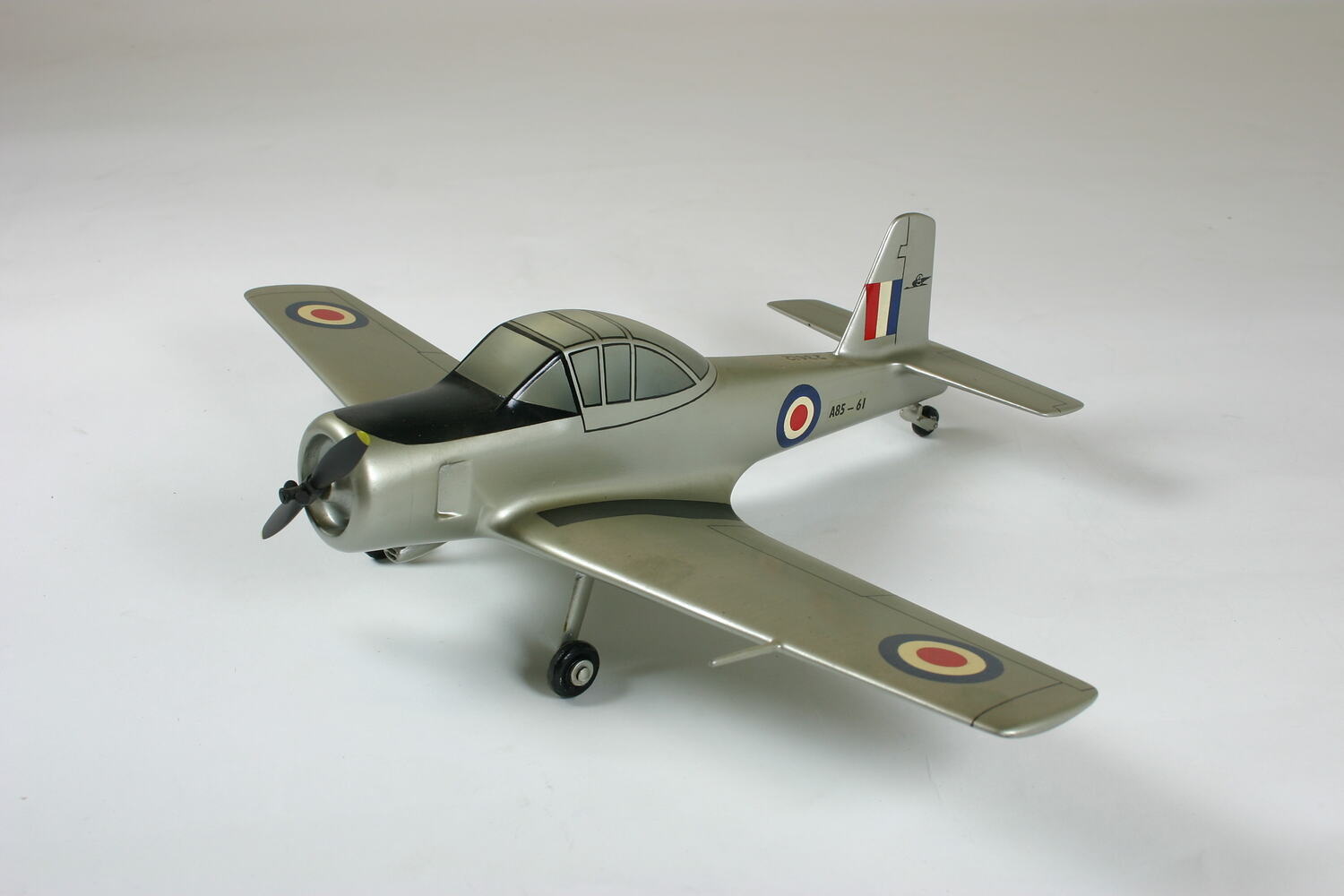 A 1:30 scale model donated to the Museum in 1954 by the Commonwealth Aircraft Corporation along with several other models of CAC aircraft types displayed at the 1953 Jubilee of Flight exhibition at the Museum. It is painted in the basic all silver scheme used by most RAAF Winjeels in the 1950s. It represents 'A85-61' which does not relate to any known serial number used by a RAAF Winjeel.