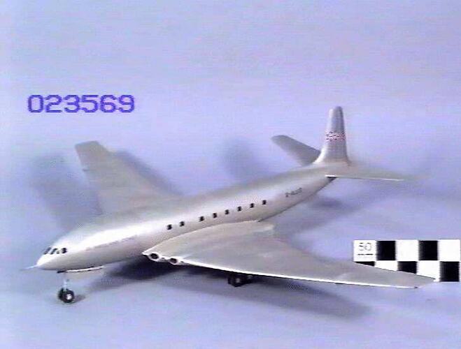 1:32 scale model of a De Havilland DH106 Comet I. The model was made in 1952 and was purchased by the Museum from a commercial modelmaker in March 1953.