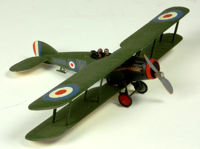 This scale model of a Bristol F.2B is painted to represent a E2581, built in September 1918 which served with 39 Squadron RAF. In 1921 this aeroplane was donated to the Imperial War Museum in London.