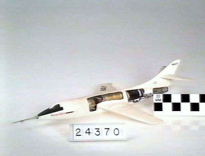 This 1:32 scale model of a Douglas Skyrocket was commissioned by the Museum and received in 1958. It features cut-away sections in the fuselage.