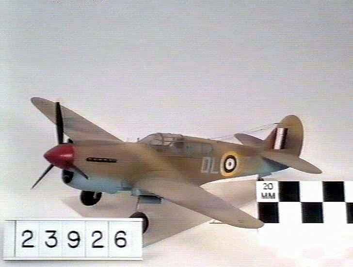 This 1:32 scale model of a P-40E Kittyhawk was commissioned by the Museum and built by Mr R.D. Ramsay in 1955. It is painted in a typical RAF Desert Air Force camouflage scheme used in North Africa.