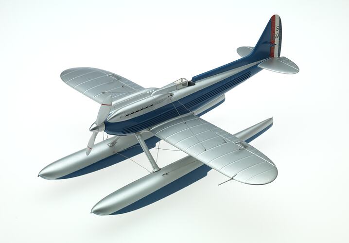 This 1:32 scale model was commissioned by the Museum and built by Mr R.D Ramsay in 1953. It represents the winning Supermarine S.6B, serial number S1595, built by the Supermarine Aviation Works Ltd, in Southampton, England, and flown in the 1931 Schneider Trophy contest.