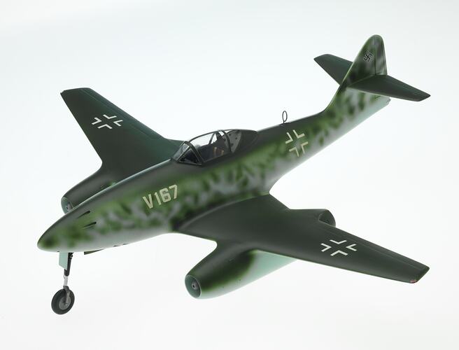 1:32 scale model of a Me 262 was commissioned by the Museum and built by Mr R.D. Ramsay in 1965. It is painted to represent 'V167' the V5 pre-production aircraft.