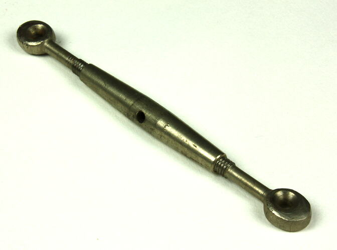 This turnbuckle is part of a group of related items donated to the museum by James Isaac Watson, in 1919. It is not known whether this particular component was recovered from the wreckage after the crash or was a spare part, however, it is very similar in design to turnbuckles on the bracing of the fuselage section from Basil Watson's biplane held by Museum Victoria (ST 014905), and in historical photographs of the aircraft.