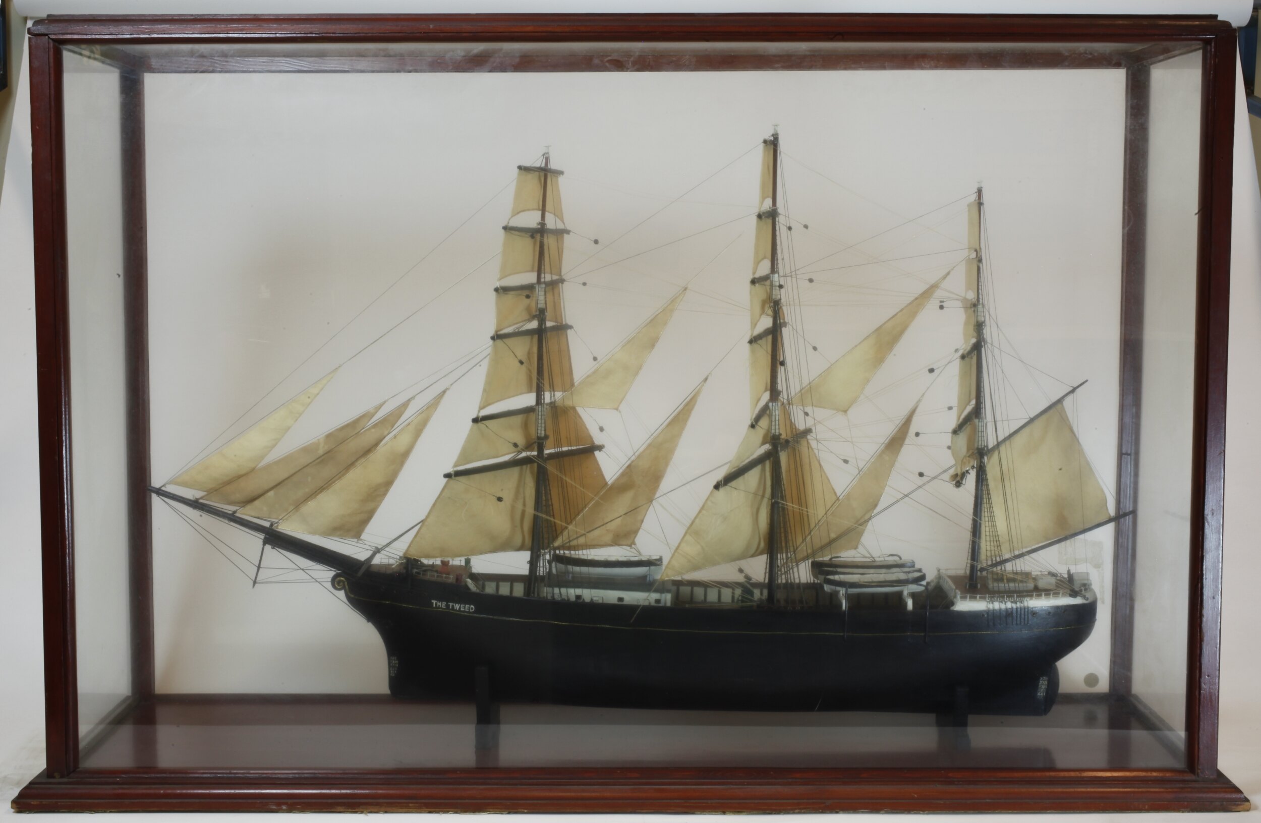 The Tweed was a fully rigged clipper ship famous the world over for its speed. It was launched in 1854. This Bombay-built, full-rigged ship first sailed as the paddle steamer Punjaub owned and operated by the East Indea Company and serving as a troopship during the Crimean War. It was sold to John Willis and Sons, London, in 1862 and converted to a clipper. It sailed the New Zealand-Australia-England route towards the end of its life, well after the gold-rush era - for example, in 1874 February 3 - April 27 it sailed Melbourne to London in 83 days with a cargo of wool. After conversion to sail she had a successful career and was broken up in 1888 following storm damage. Her timbers were said to have been used to roof a church in Port Elizabeth, South Africa.