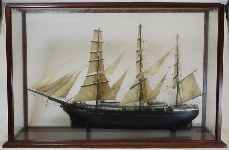Model of the British clipper ship 'The Tweed', representing the appearance of the vessel during her later years of service on the Australian route clipper ship made after 1854.