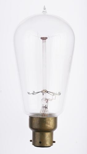 220 Volt, 50 Watt, straight tungsten filament, electric lamp. Made by Siemens Brothers Dynamo Works Ltd, in Dalston, London, England from 1910.