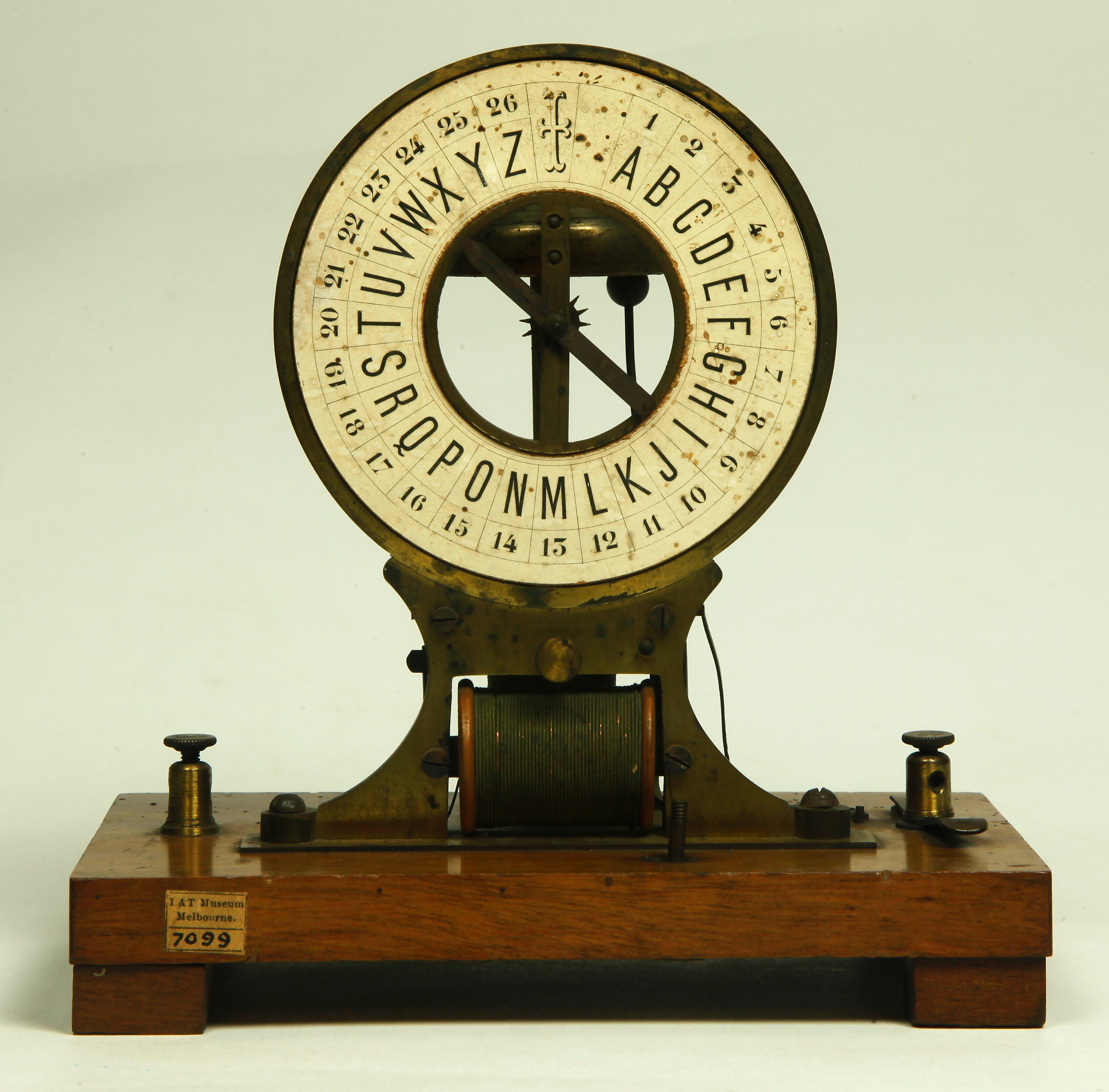 This receiver is a component of one of the first electric telegraph systems which could be used easily by non-skilled operators. It did not require the operator to learn morse or any other code.