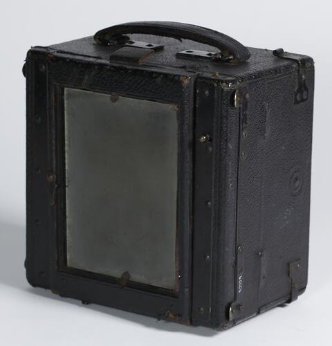 Sanderson Junior Model Quarter Plate camera with one plate. Used by George Rayner in Antarctica 1927-1939.