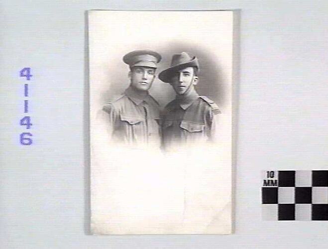 The photograph appears to be associated with the service of Charles Washburn Joyce, service # 1082. He was formerly an English farm-hand, and embarked 19 October 1914, at the age of 20. He was part of the Gallipoli landings on 25 April 1915, and later served on the Western Front. He was wounded several times but survived the war, returning to Australia in December 1918.