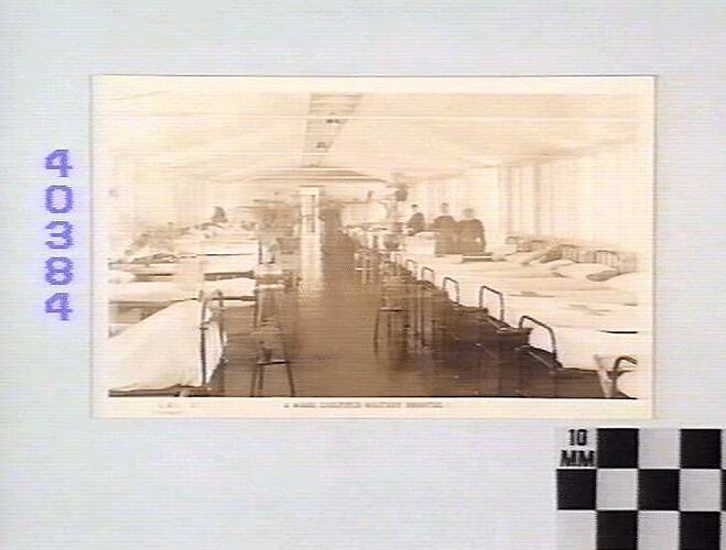 Photograph of a ward, Caulfield Military Hospital, World War I. One of a series of images that promote the facilites at the hospital.