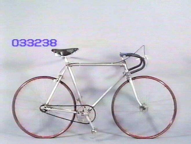 Caminade racing bicycle given to Hubert Opperman, circa 1938. It is fitted with a rear wheel rim brake, pedal powered rear wheel chain drive and a 'harden' rear wheel fixed hub. Frame octagonal shaped duralumin. Made by Caminade, France, circa 1938. This example is believed to be serial no.325.