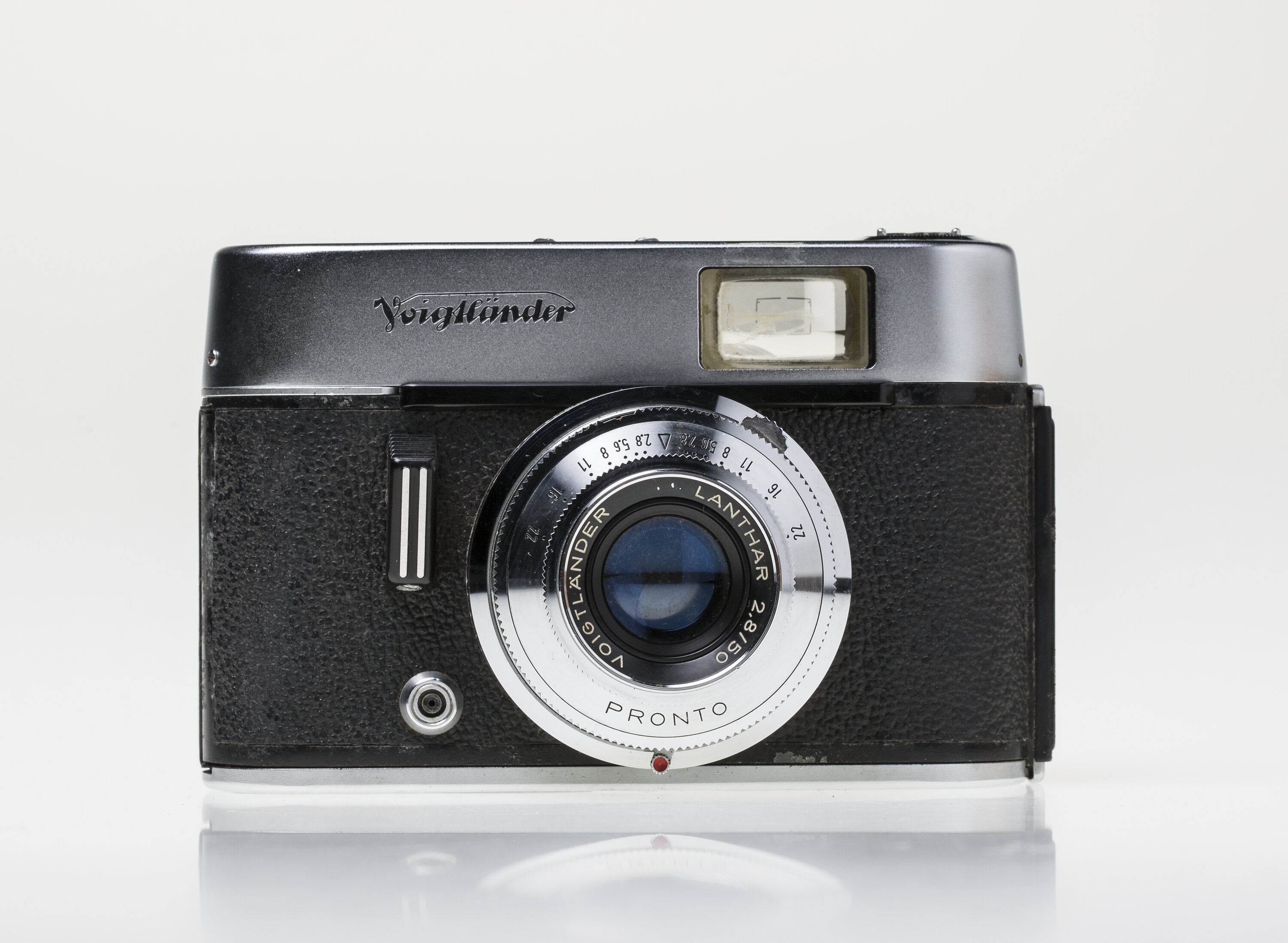 This is the first model in the Voigtländer Vito C range of cameras. It is equipped with a Lanthar f/2,8 50mm lens and a Prontor 250 S shutter and housed in its original brown leather carrying case.
