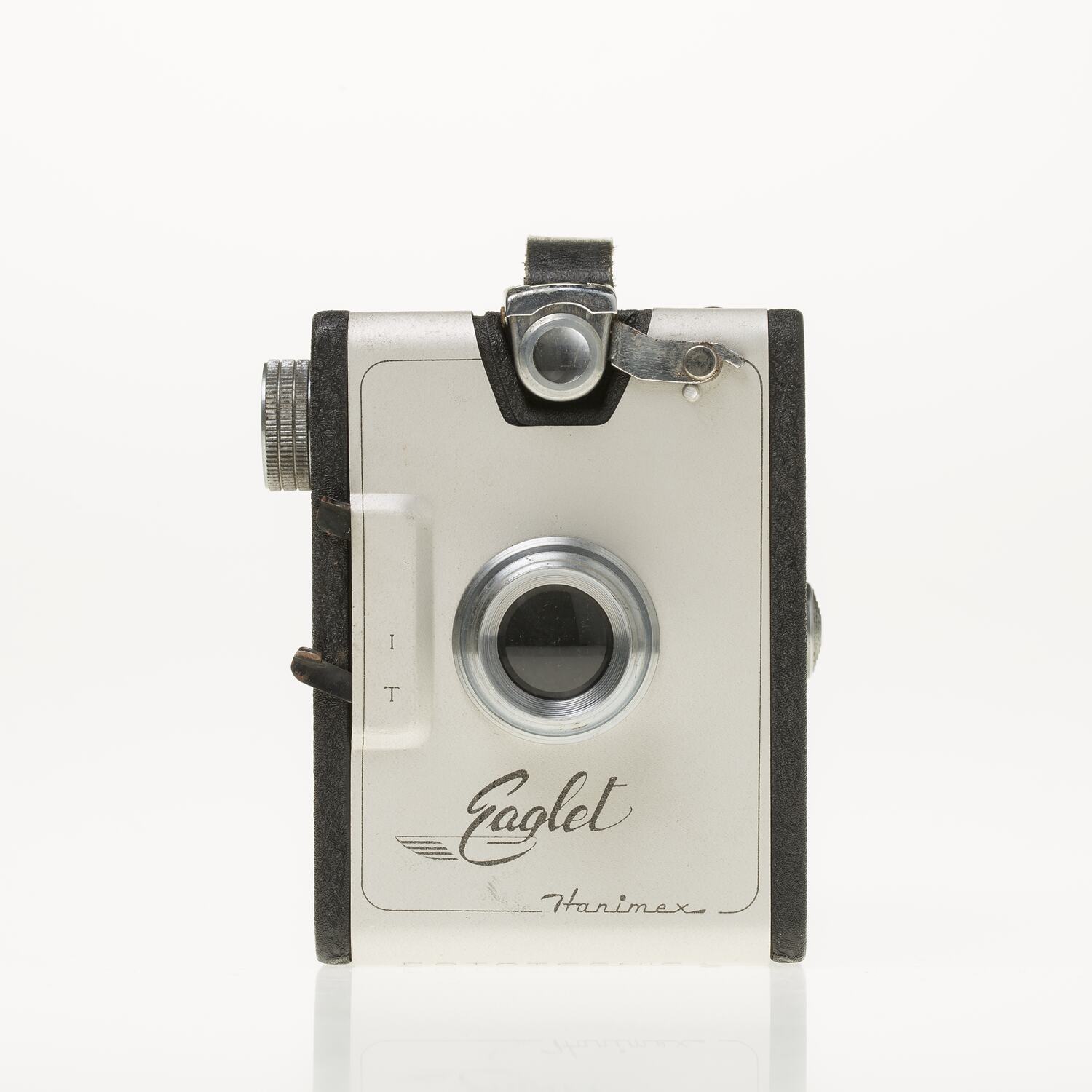 Hanimex, 'Eaglet', 6cm x 6cm box camera manufactured by Fototechnica in Turin, Italy, circa 1952.