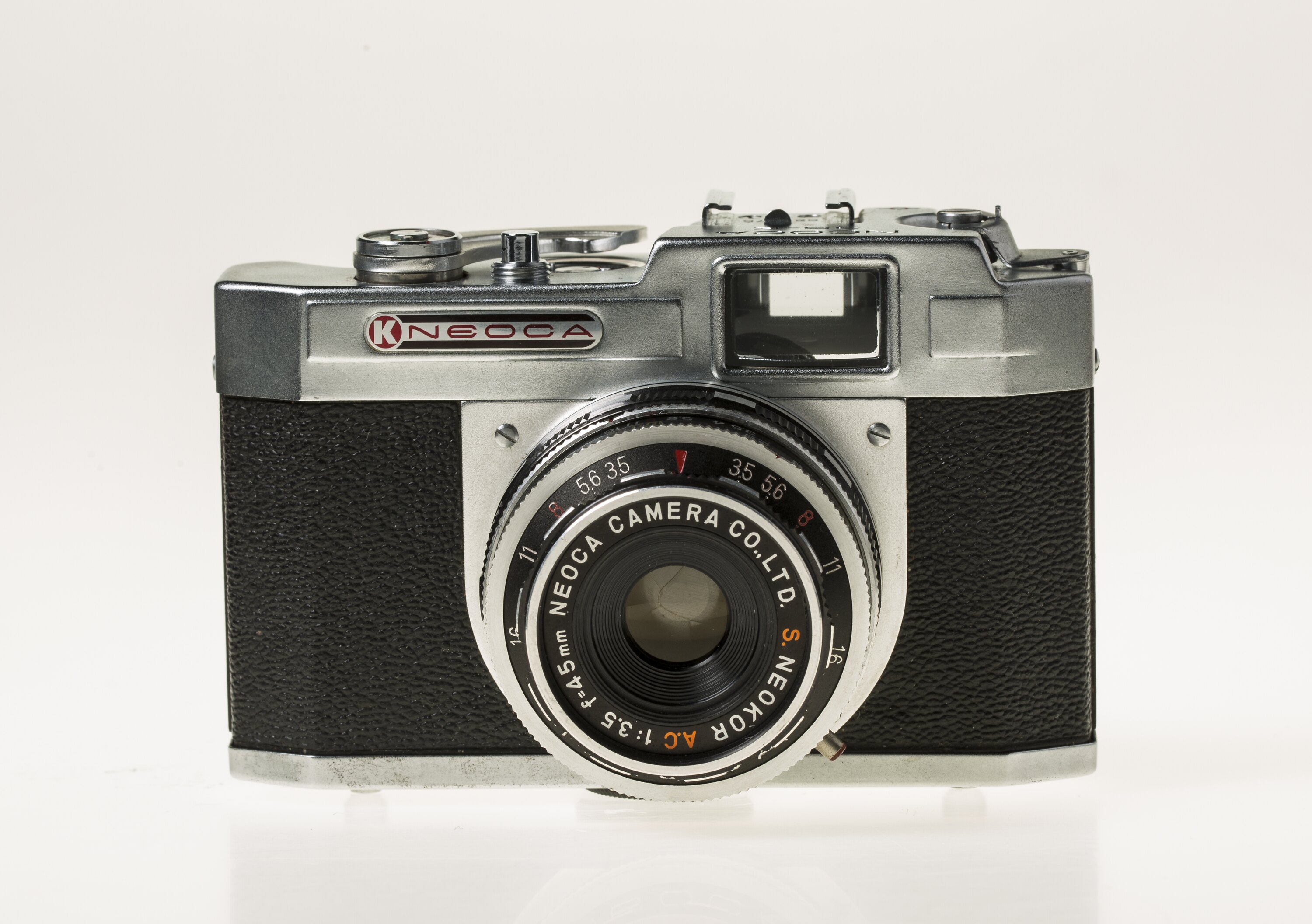 Noeca 35K, 35mm camera with a Neokor scale focusing f/1:35 45mm lens and shutter range from 1/25 to 1/300 sec. manufactured by Neoca, circa 1955.