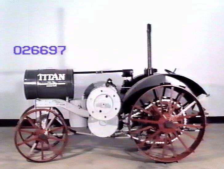 This Titan 10-20 tractor was used on the 'Green Mountains' poultry farm in Croydon from the early 1950s until its acquisition in 1964. The Titan tractor was used to plough the paddock in which feed for the chickens was grown. It was acquired in poor condition in 1964 and was subsequently 'reconditioned' (comestically restored) for static display by Vivian Expositions pty Ltd, of Clifton Hill, and placed on display in the South Rotunda of the Science Museum galleries.