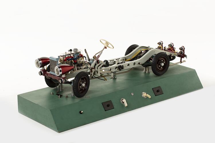 Emil Hohm was an Opel car dealer who began building instructional models in the 1930s as a teaching aid to show drivers how a car worked. The engine and drive-train are powered by an electric motor. These models were used in German driving schools where student drivers were required to have an appreciation of basic mechanical principles. Production resumed after World War II and more than 1,000 examples of these Hohm working instructional models were built.