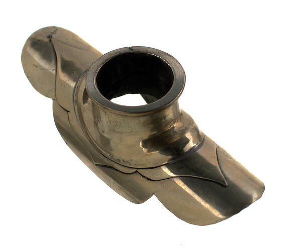 One of a set of seven opium pipe mounts which are part of a group of opium related objects obtained in a raid on Chinese premises by investigating officers from the Victorian Customs Department circa 1905-1930. Opium use was widespread in China between the 17th and 19th Centuries with the British East India Company importing large quantities of the drug. Chinese attempts to ban the opium trade and resistance against the foreign intervention it represented culminated in the Opium Wars of the early to mid-19th Century when force of arms ensured that Chinese ports remained open to opium.