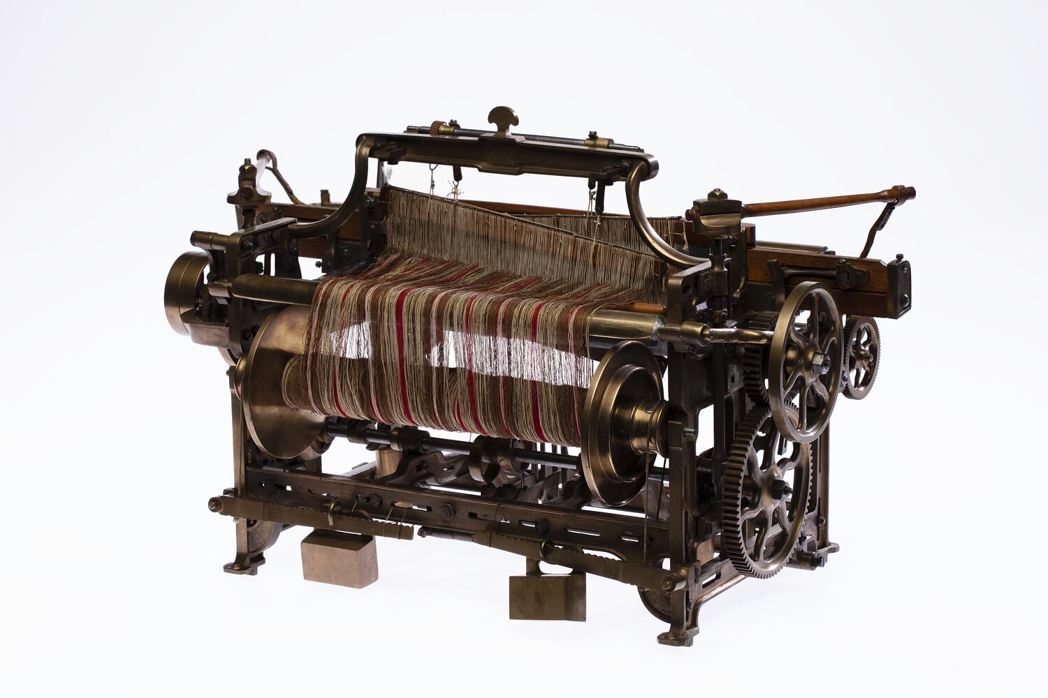 Power loom model made by Butterworth and Dickinson copied from the George Hattersley design. It was exhibited at the 1888 Centennial Exhibition, Melbourne Victoria.