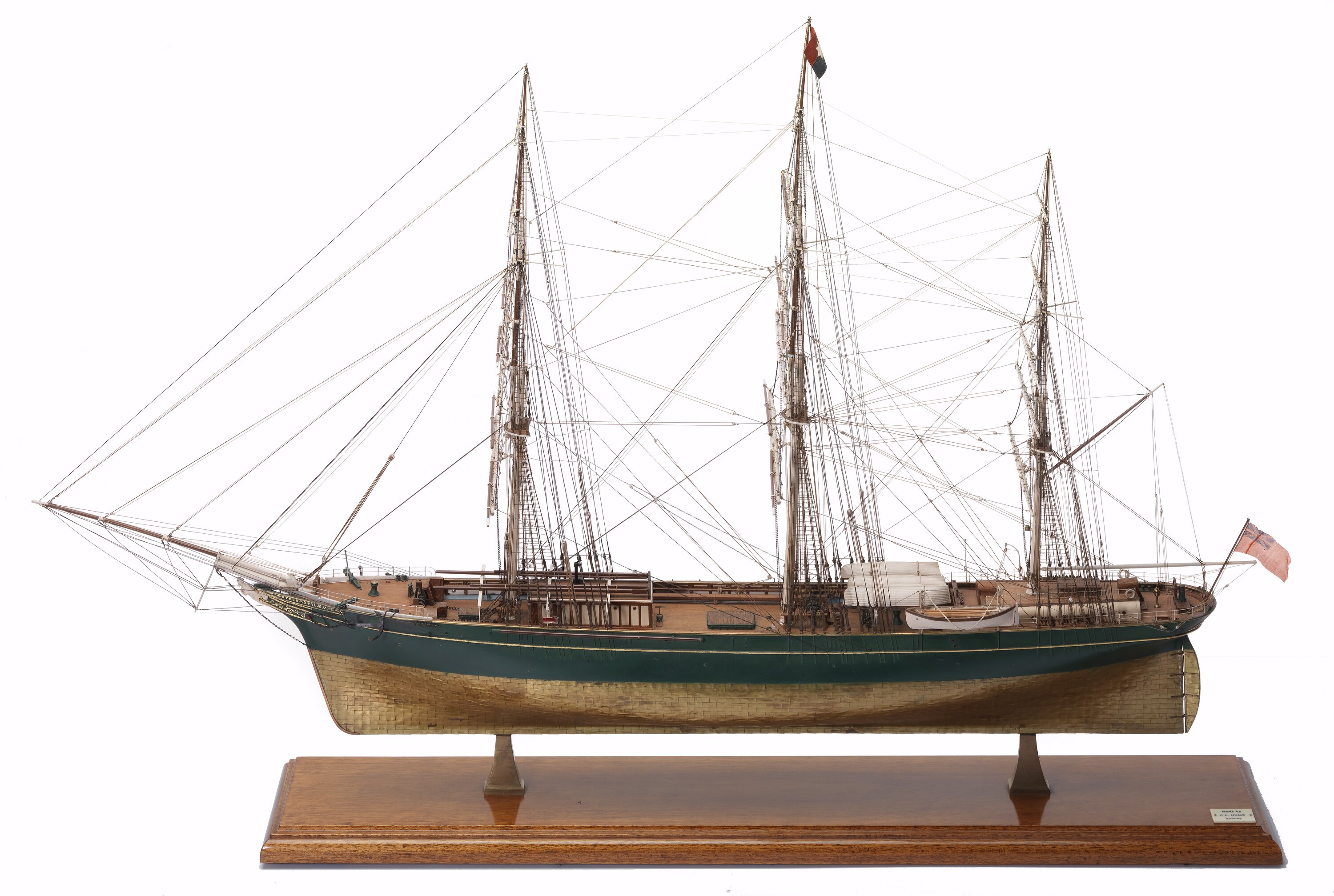 On side of ship: THERMOPYLAE At rear of ship: THERMOPYLAE / ABERDEEN On plaque on mount: Made by / C.L. HUME / Sydney