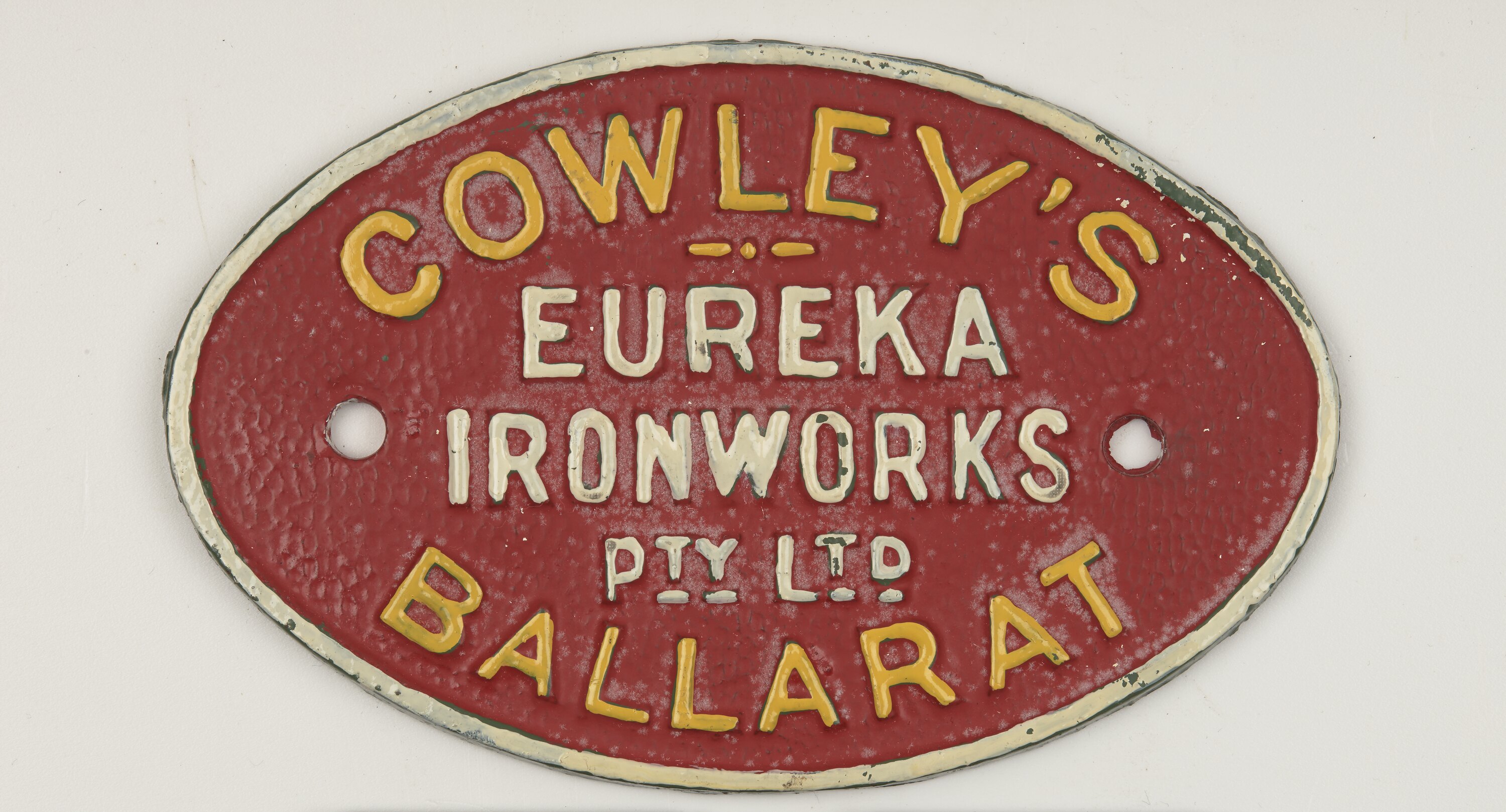 Front: "COWLEY'S / EUREKA / IRONWORKS / PTY LTD / BALLARAT "