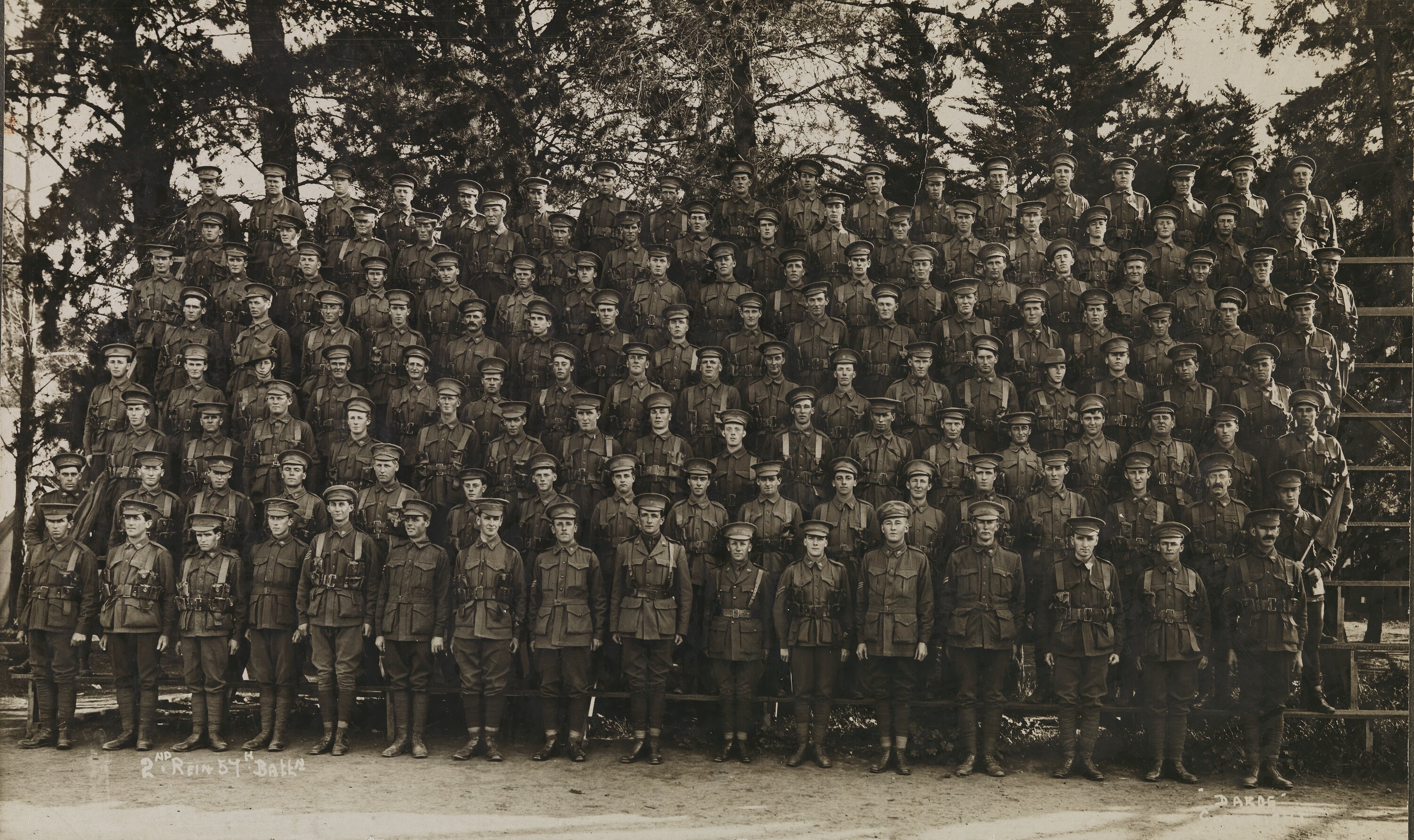 Group portrait of Australian servicemen of the 2nd Reinforcements 57th Battalion, A. I. F., circa 1916.