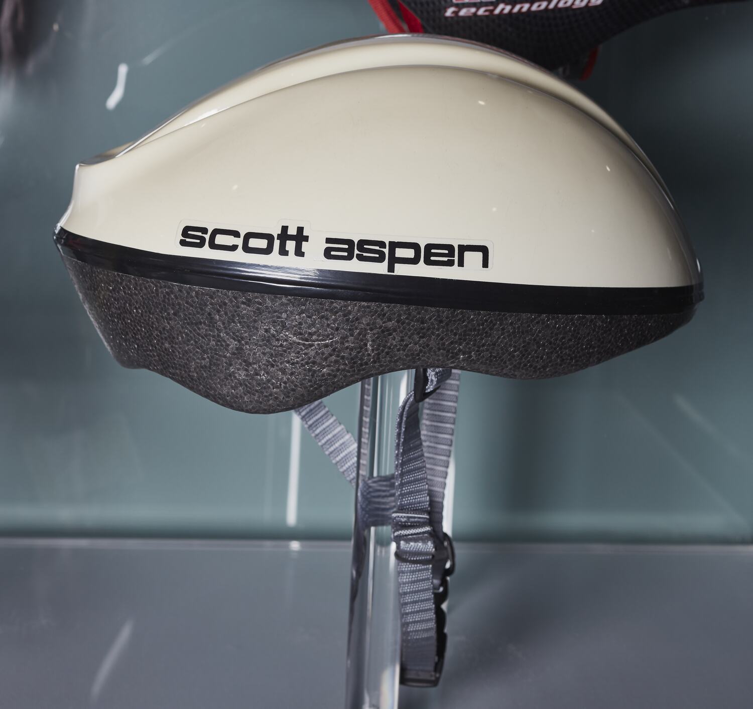 Printed black text on side reads: 'scott aspen'.