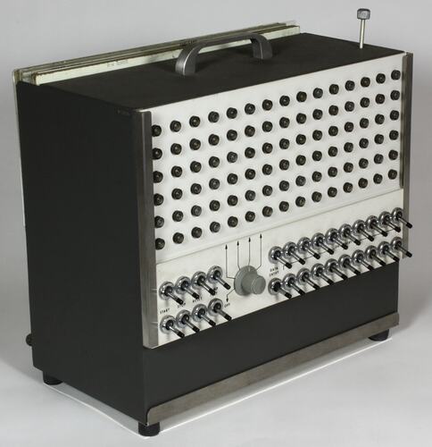 This computer exercising machine enabled a technician, if there was a problem, to "single-step" through a long program, observing the correct steps and pouncing on the incorrect computer response to identify the problem. Alternatively, it could single-step through test programs.