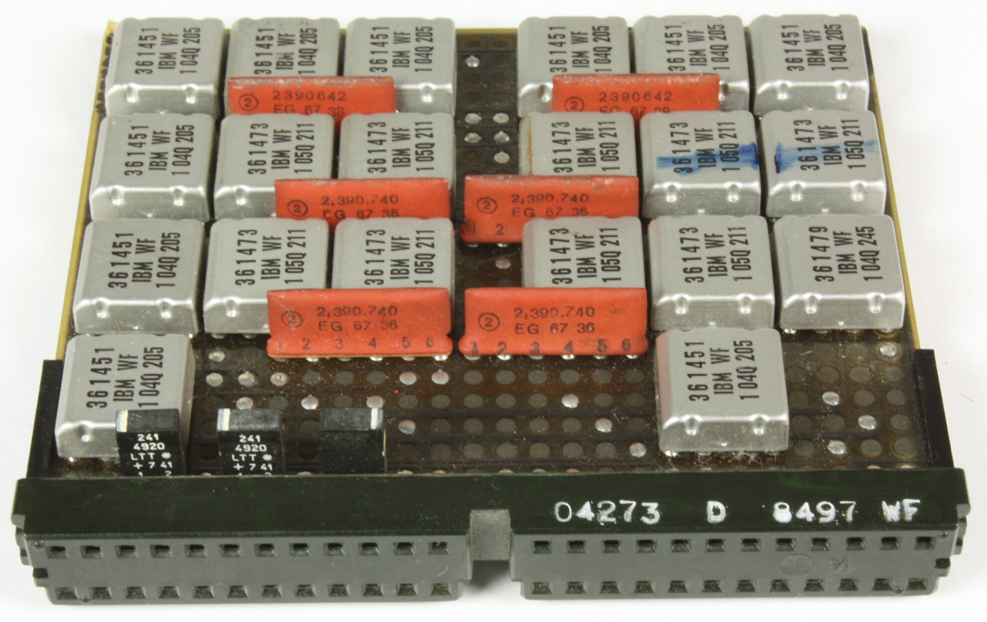 Four plug-in circuit board modules. Made by IBM, using IBM's proprietry SLT (Solid Logic Technology) manufacturing technique.