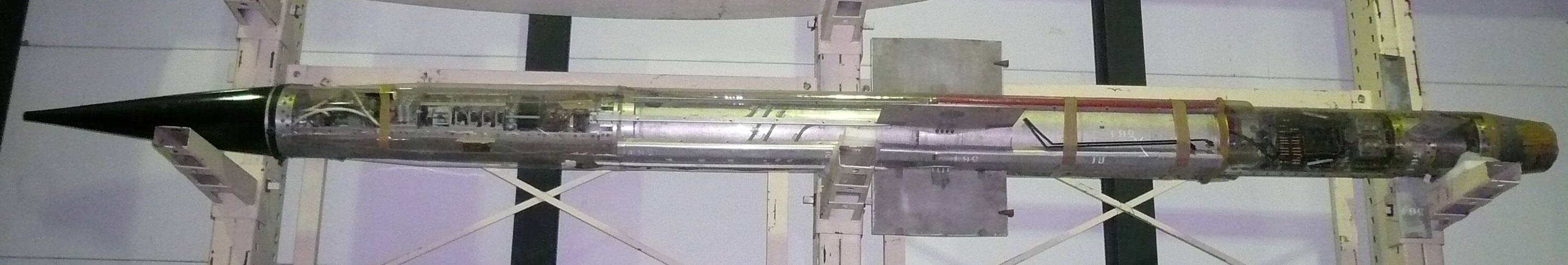 The Museum has two examples of the RTV1e second stage rocket in its collection (ST 35159 & HT 21616). One has had its casing replaced with clear plastic for display purposes. They were donated by the Department of Supply in 1962. It also holds an example of the Stage 1 Booster Unit (ST 26129).