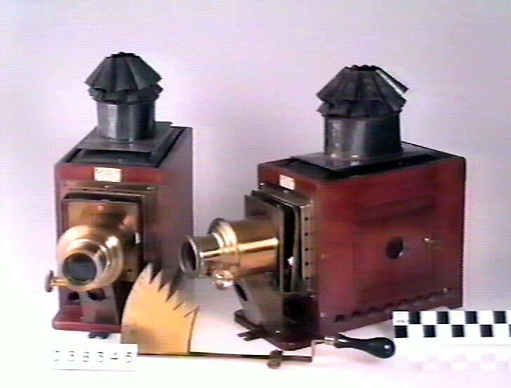 Set of two projectors used in combination with shutter in magic lantern presentations.