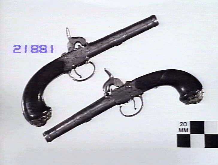 Pair of percussion pistols. Cal. 34 bore (.515 in.). Flintlock conversion. Made by W. Richards, Birmingham, circa 1783.