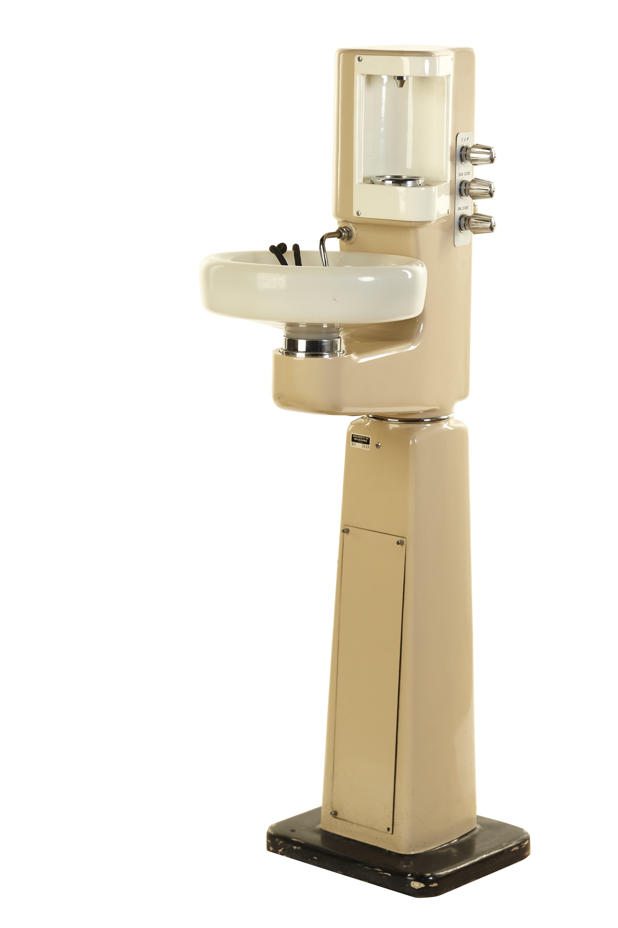The spit bowl/stand and dental chair were used for demonstration purposes only at the University of Melbourne.